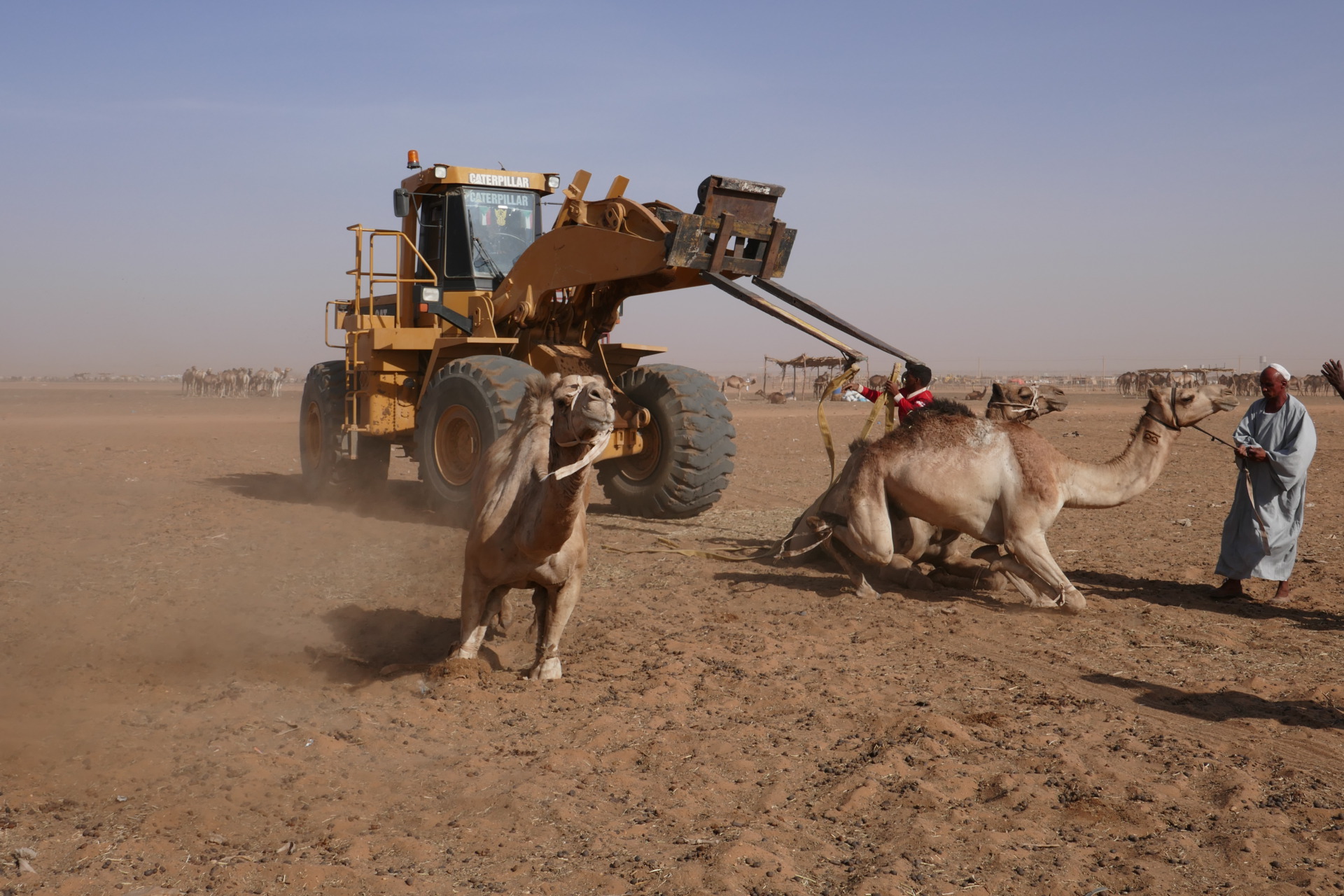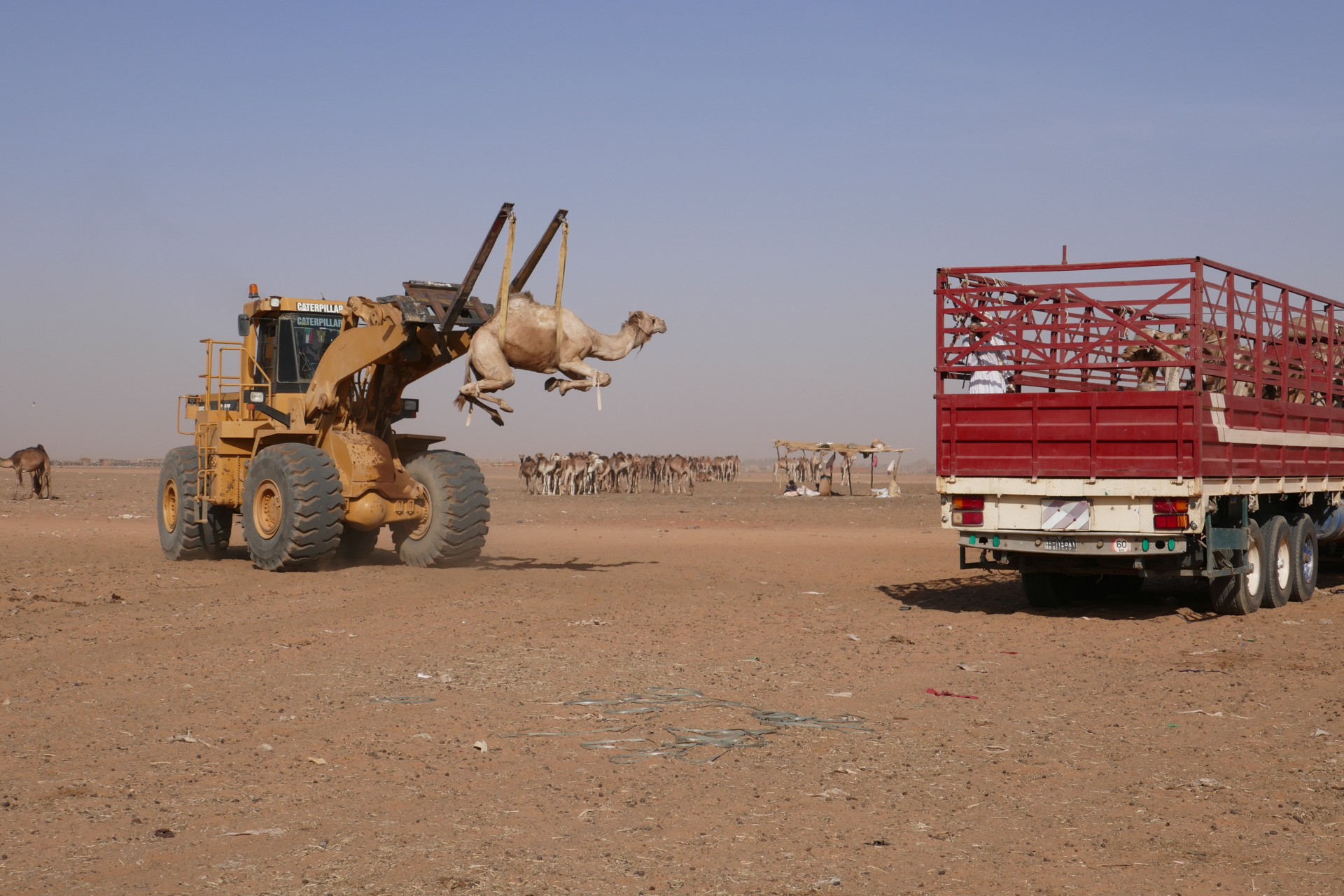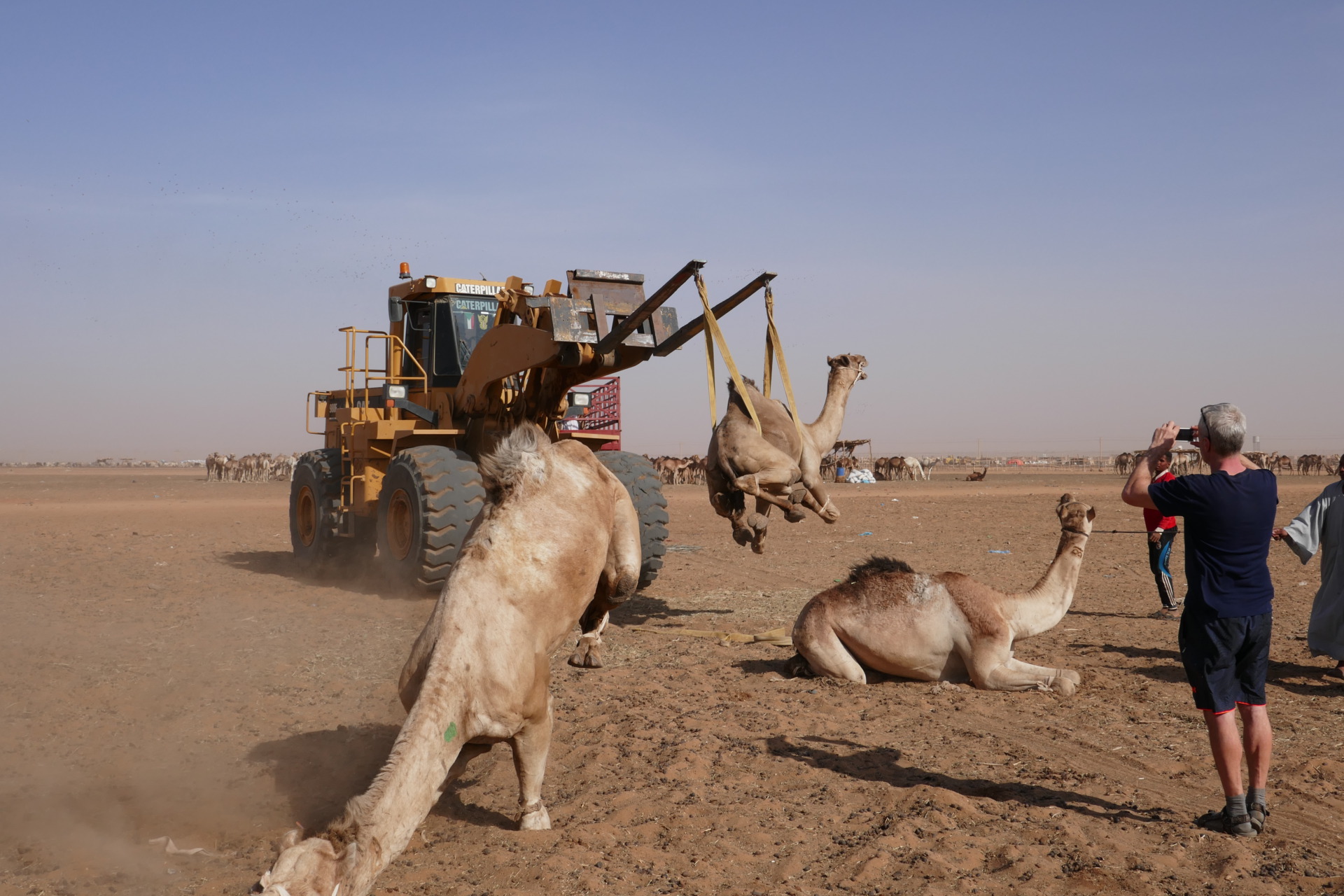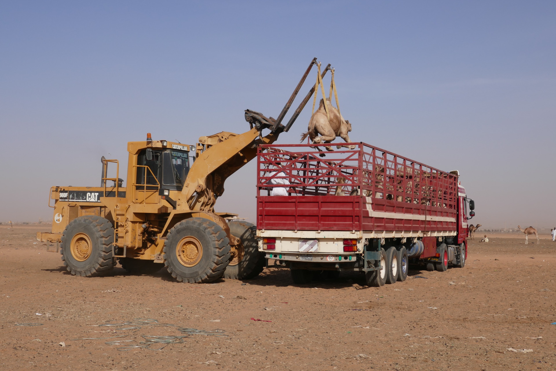 However, an interesting sight was how they load the camels unto the trucks. Who would have thought what you can use a caterpillar for: