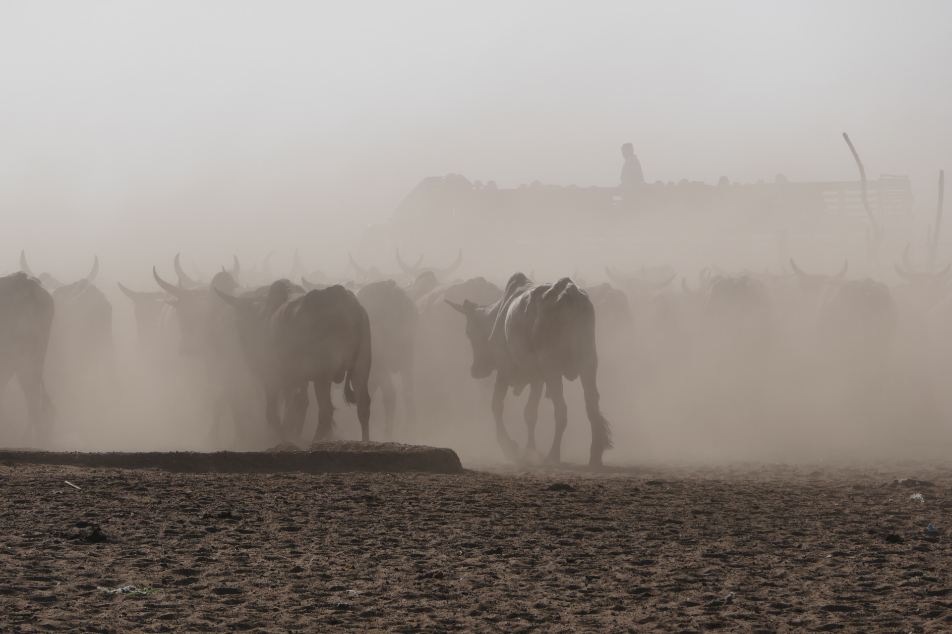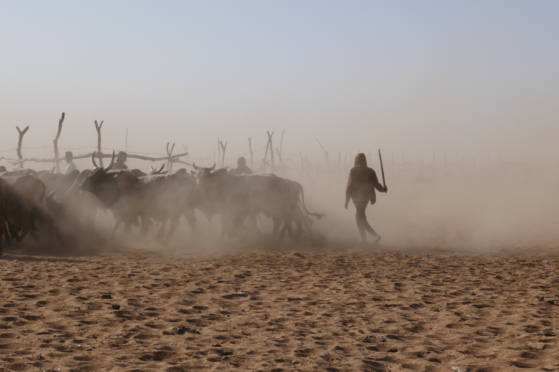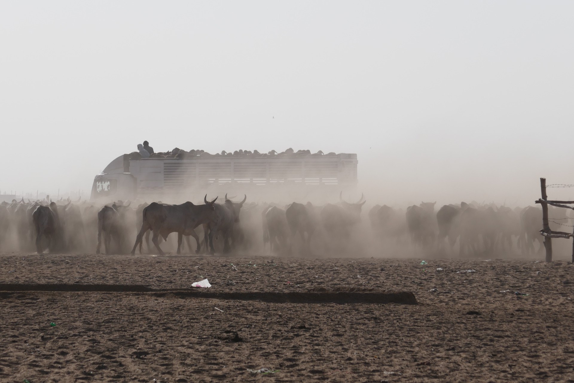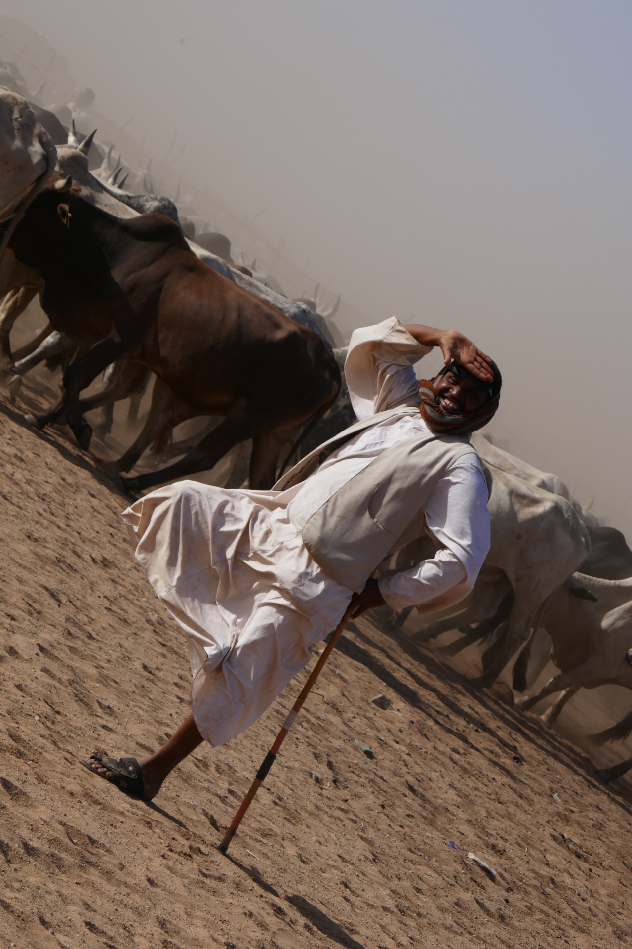 Today, we went to a camel market in the morning. It sounded interesting but the atmosphere was kind of dead in the beginning. The whole market hassling would have happened the next day. So, except for one big cattle herd on the move, which was really impressive, we only saw the camels and cattle waiting for their destiny: being sold into a butchery (e.g. in Egypt) and then onto a plate.
